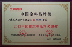 8月27日,“2013中国涂料品牌榜”揭晓。江苏PA旗舰厅官网涂料有限公司凭借在品牌知名度、创新力等方面的优秀表现,一举斩获中国建筑类涂料名牌奖这项大奖。图为江苏PA旗舰厅官网涂料有限公司此次颁奖获得的荣誉证书。